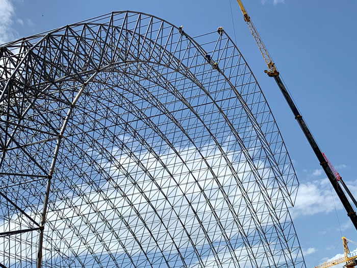 (2)网架加工前应对现场尺寸进行复测,确认无误后方可进行加工、安装;网架制作、运输、安装应遵守《空间网格结构技术规程》JGJ7-2010、《钢网架锦州螺栓球节点》JG/T 10-2009、《钢网架锦州螺栓球节点用高强度螺栓》 GB/T 16939-2016、《锦州钢结构锦州工程锦州施工规范》 GB50755-2012、《锦州钢结构锦州工程锦州施工质量验收标准》 GB50205-2020。